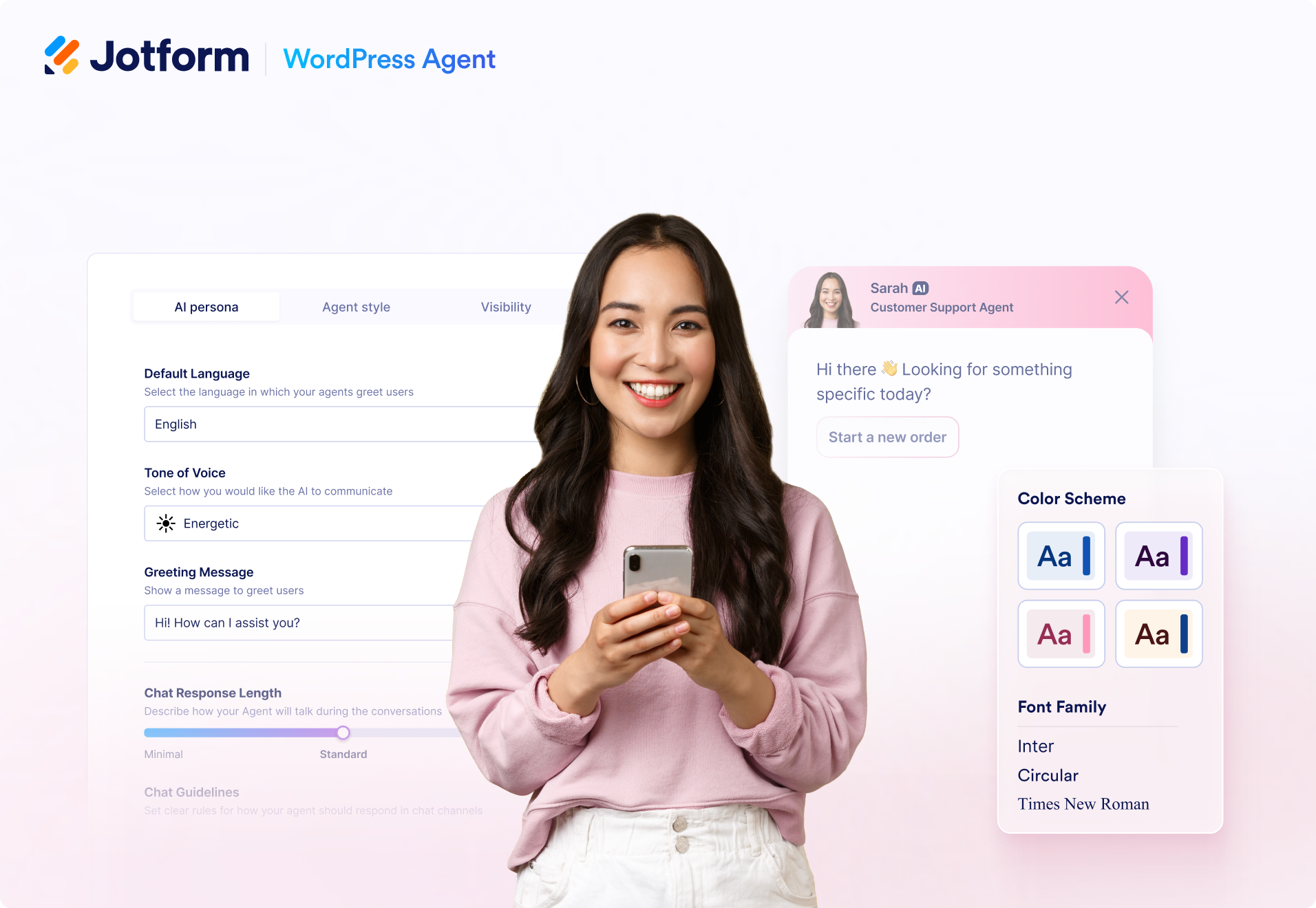 웹사이트에 맞게 WordPress 에이전트를 세밀하게 맞춤화하세요. 디자인, 톤, 대화 흐름을 조정해 모든 방문자에게 자연스럽고 브랜드에 맞는 개인화 경험을 제공하세요.