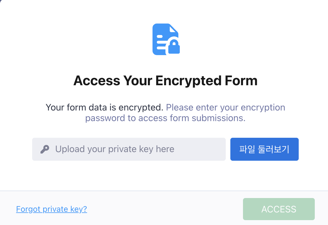 암호화된 제출물을 보려고 하면 개인 키를 업로드하라는 메시지가 표시됩니다. 여기에서 이전에 다운로드한 개인 키를 사용합니다. 키를 업로드하고 완료 버튼을 클릭하면 제출된 내용이 자동으로 표시됩니다.