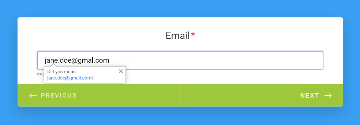 또한 이메일 필드는 틀린 이메일 주소에 대한 자동 에러 확인 및 제시 기능을 가지고 있습니다.