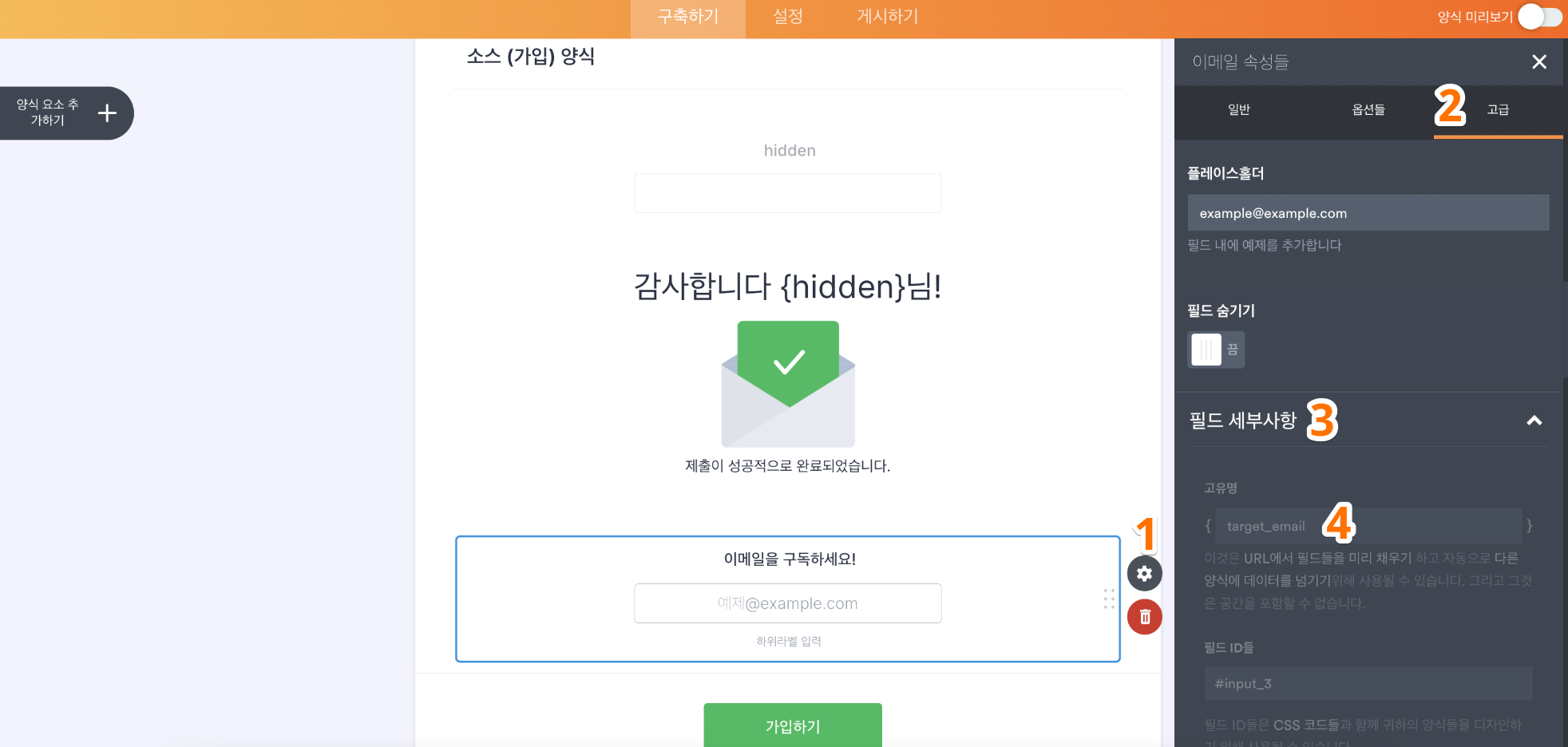 - target_email — 이메일 요소에 대한 대상 양식의 고유명을 키로 사용합니다.