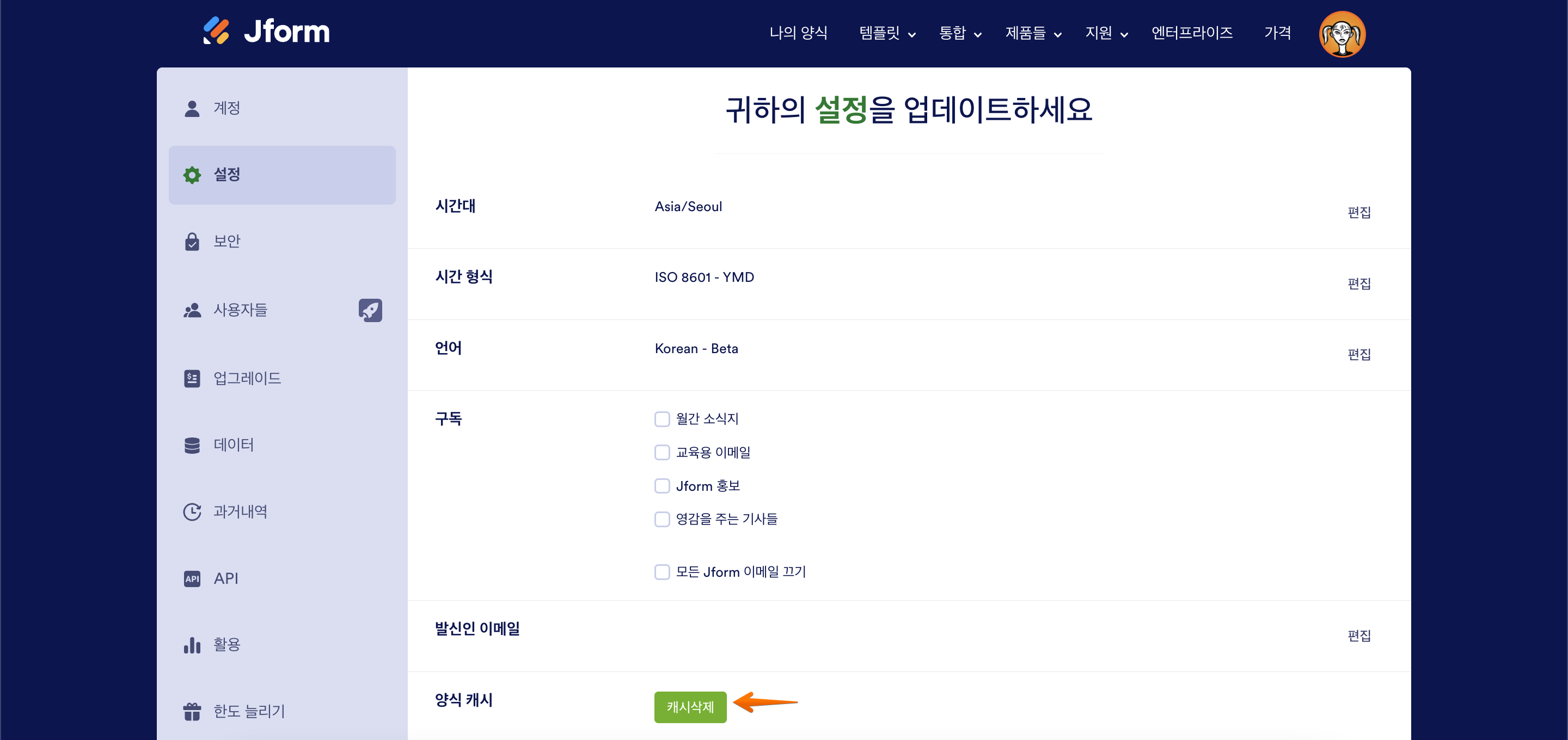 양식 캐시를 지우려면