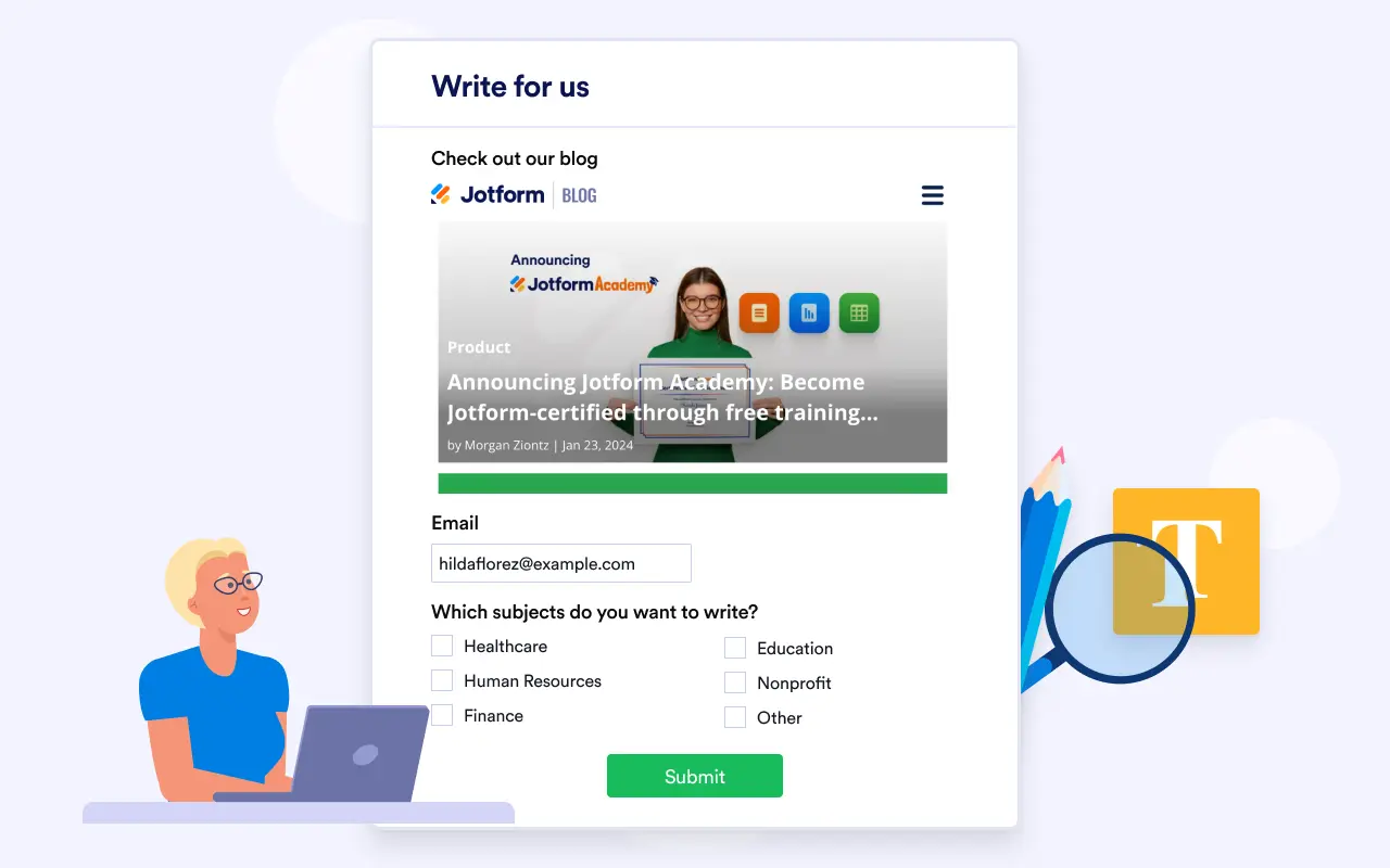 무료 Iframe 삽입 위젯을 사용하면 iframe(다른 HTML 문서에 삽입된 HTML 문서)을 양식에 삽입할 수 있습니다. iframe URL을 복사하여 위젯 설정에 붙여넣고 iframe을 투명하게 할지 여부를 선택하세요. 그러면 양식을 통해 iframe을 탐색할 수 있습니다!
